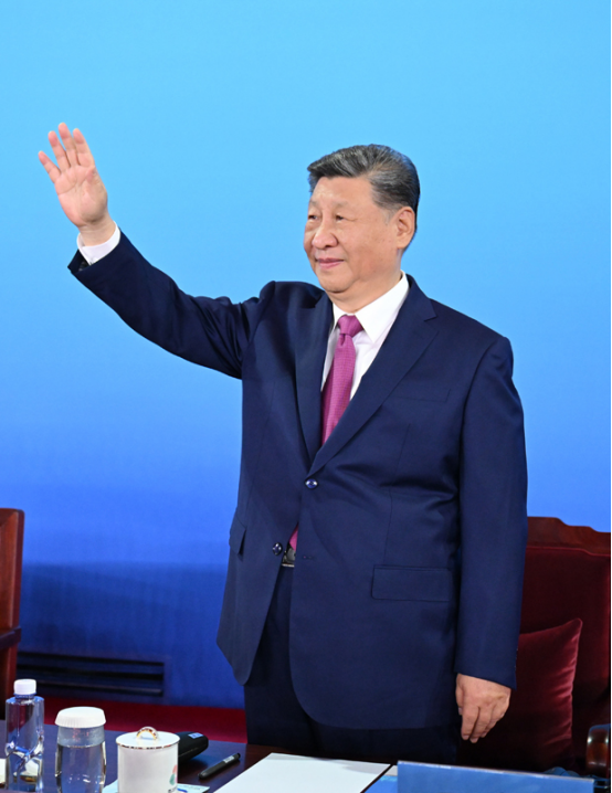 11月9日晚,中共中央总书记、国家主席、中央军委主席习近平在广东省广州市出席中华人民共和国第十五届运动会开幕式并宣布运动会开幕。这是习近平在主席台上向大家挥手致意。新华社记者 燕雁 摄